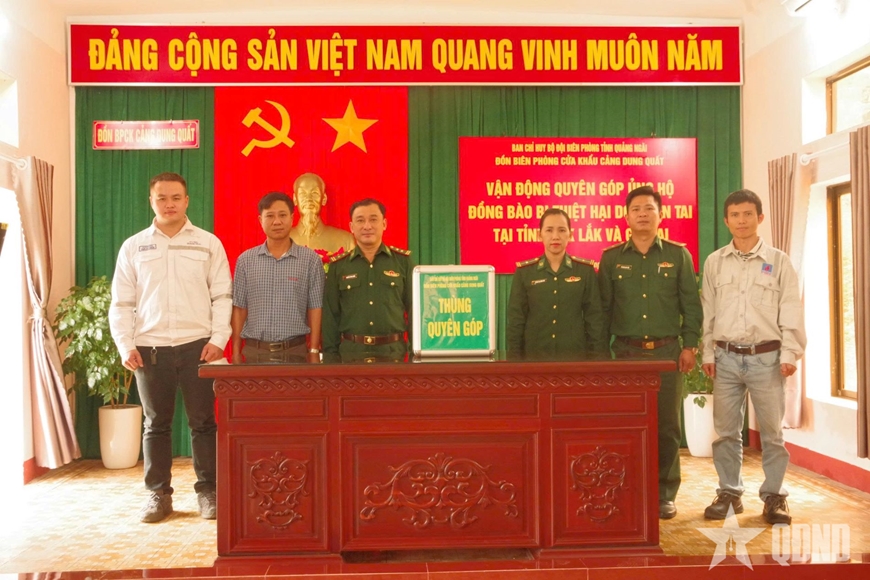 Trung tá Nguyễn Tùng Dương, Đồn trưởng Đồn Biên phòng cửa khẩu cảng Dung Quất chia sẻ: “Chúng tôi vận động cán bộ, chiến sĩ quyên góp 20 triệu đồng, phần còn lại do các doanh nghiệp, nhà hảo tâm trên địa bàn đơn vị đóng quân chung tay ủng hộ. Số tiền này chúng tôi sẽ nhanh chóng chuyển đến tay người dân bị thiệt hại trong trận lũ vừa qua”.
