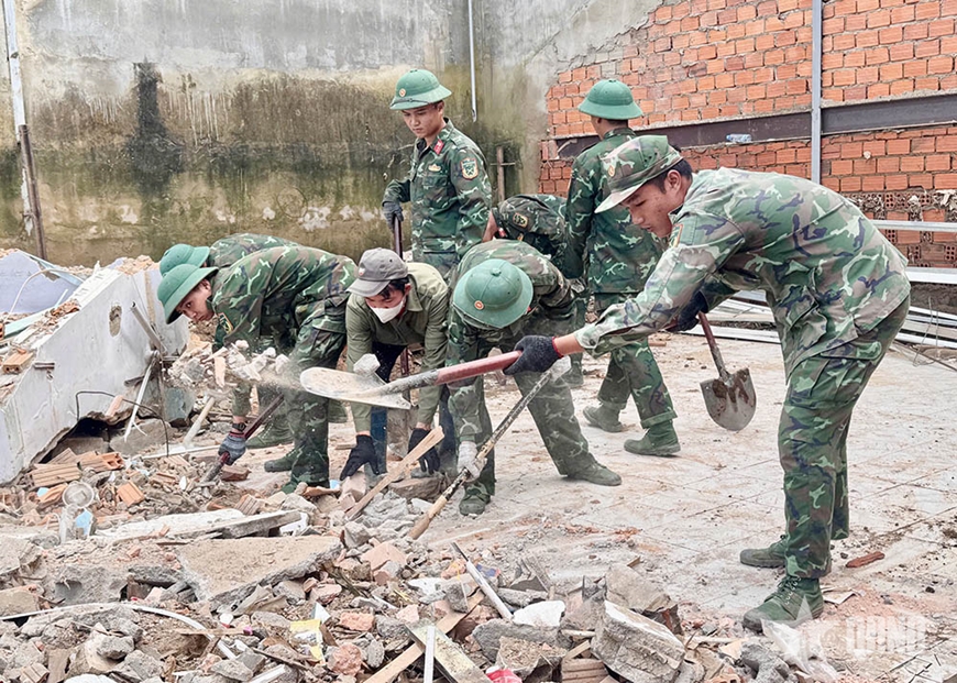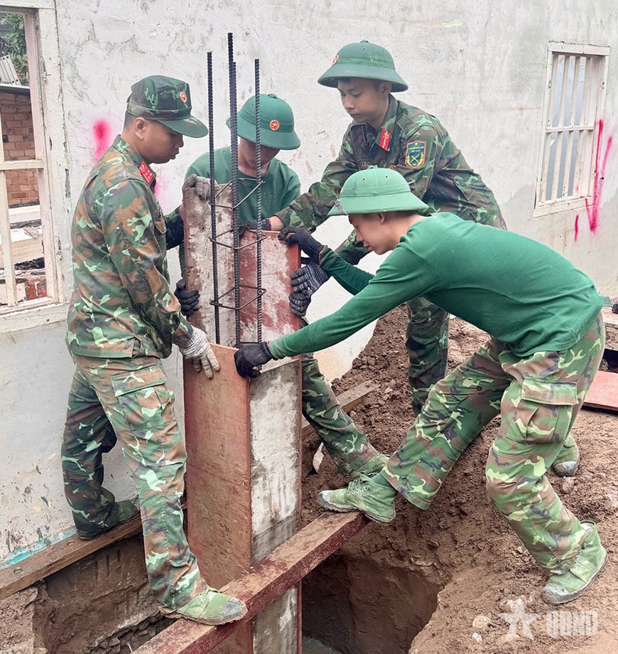 Để hoàn thành tốt nhiệm vụ, đơn vị đã phối hợp với Công ty trách nhiệm hữu hạn một thành viên Đông Hải (Quân khu 7) gấp rút khảo sát, thiết kế, tổ chức xây dựng 3 căn nhà cho 3 hộ dân bị ảnh hưởng nặng nề sau bão lũ.