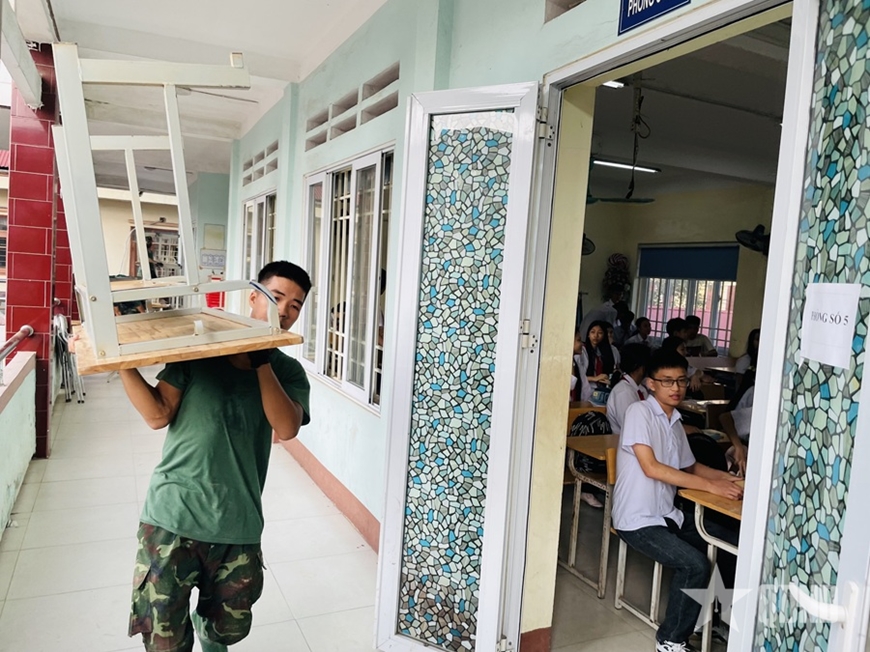Tập trung giúp các trường học "dọn lũ" để học sinh sớm được trở lại trường học. |