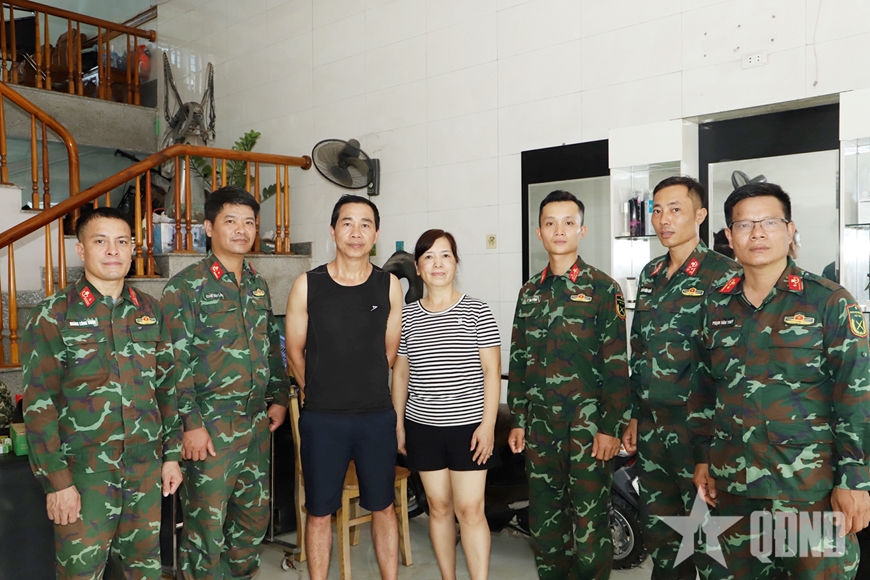Cán bộ Lữ đoàn Đặc công biệt động 1 thăm vợ chồng anh Trần Văn Vinh. |