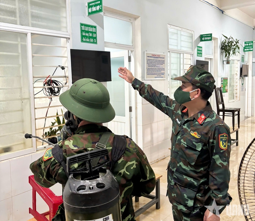Khu vực các bệnh viện được bộ đội hóa học phun khử khuẩn, tiêu tẩy kỹ càng.