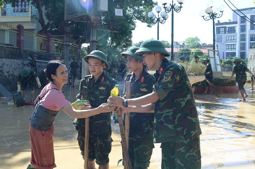 Đại tá Nguyễn Công Khuê, Chính ủy Bộ CHQS tỉnh Lạng Sơn khẳng định: Với phương châm nước rút đến đâu lực lượng quân sự phối hợp với chính quyền địa phương khắc phục hậu quả đến đó, ngoài dọn bùn tại trụ sở các cơ quan dân-chính-Đảng, trường học, cơ sở y tế, Bộ CHQS tỉnh chỉ đạo Trung đoàn 123 và các ban chỉ huy phòng thủ khu vực thuộc Bộ CHQS tỉnh cùng lực lượng dân quân các xã ưu tiên cử lực lượng tới các gia đình chính sách, hộ có hoàn cảnh khó khăn, gia đình neo đơn để giúp đỡ người dân ổn định cuộc sống; không để ai phải rơi vào cảnh màn trời chiếu đất, đói, khát... Cùng với đó, lực lượng Quân đội tích cực phối hợp khai thông những tuyến đường bị bùn vùi lấp, sạt lở, khơi cống rãnh, bảo đảm giao thông thông suốt trên các tuyến chính... Chung tay cùng lực lượng Quân đội, Công an và chính quyền các địa phương còn có nhiều nhà hảo tâm tích cực tiếp tế nước uống, lương thực, thực phẩm cho người dân vùng lũ Lạng Sơn.