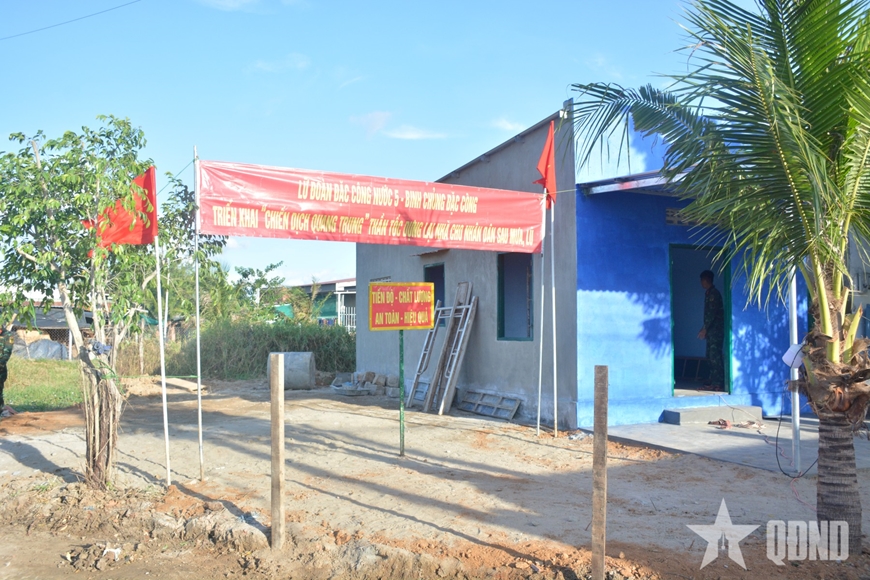 Song Lữ đoàn Đặc công nước 5 đã huy động nhiều nhân lực gồm 15 tổ xây dựng, 2 tổ sửa chữa, với hơn 200 cán bộ, chiến sĩ, tranh thủ từng ngày, từng giờ để đẩy nhanh tiến độ công việc. Những ngôi nhà mới đang dần hình thành giữa vùng quê nghèo trong niềm vui, niềm mong mỏi của bà con vùng lũ.
