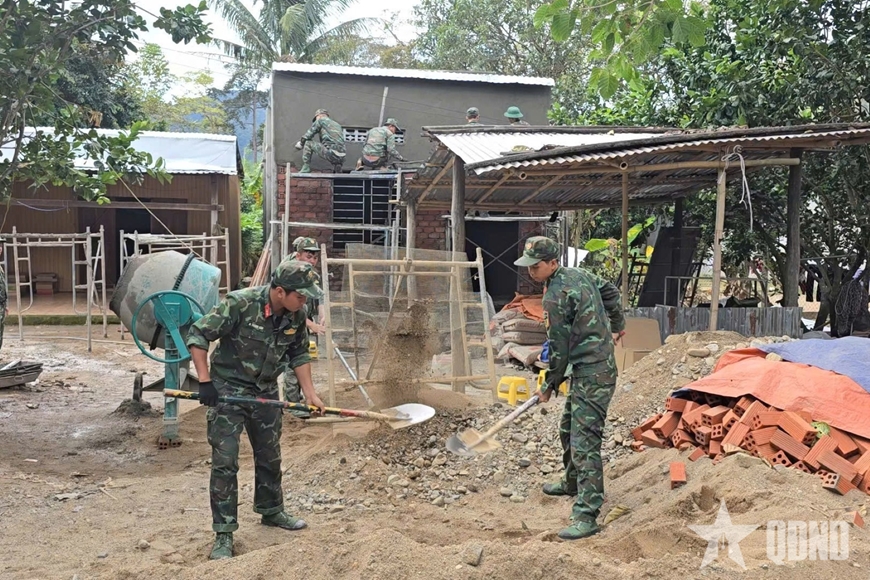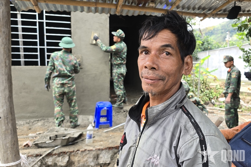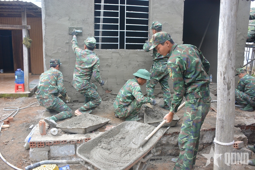Thực hiện “Chiến dịch Quang Trung” thần tốc, dù là ngày nghỉ hay những ngày thời tiết nắng mưa thất thường, cán bộ, chiến sĩ Lữ đoàn Đặc công nước 5 (Binh chủng Đặc công) vẫn đang miệt mài thi công để hoàn thiện các ngôi nhà sớm bàn giao cho nhân dân ổn định cuộc sống sau thiên tai.
