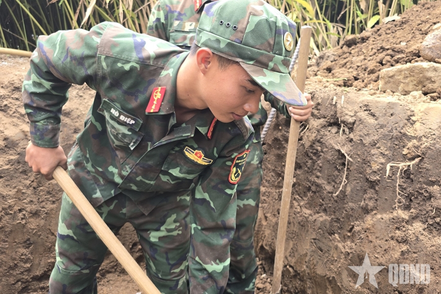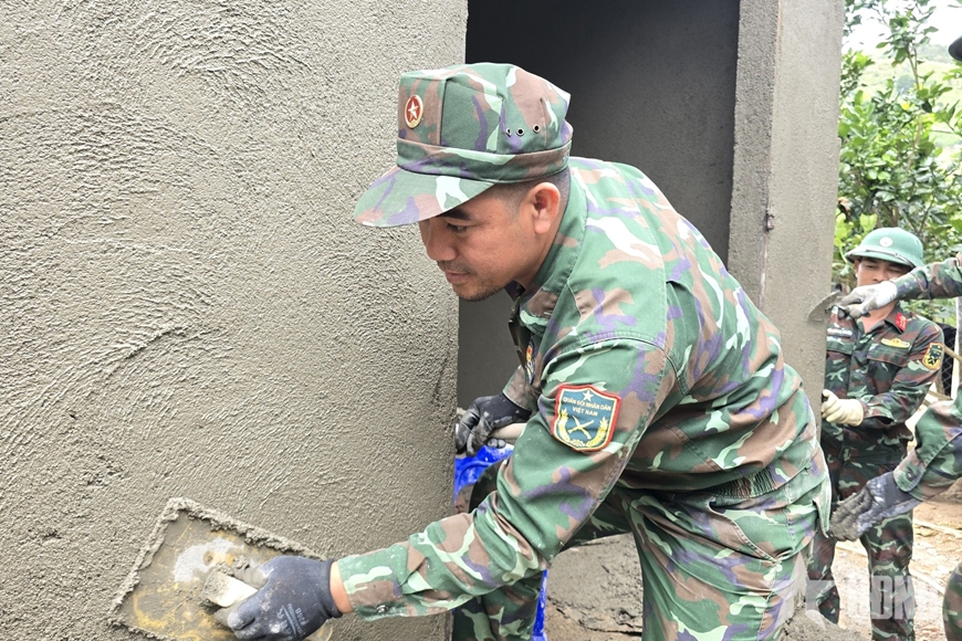 | Bộ đội tích cực đẩy nhanh tiến độ tại các công trình. |