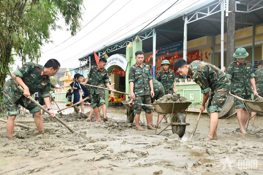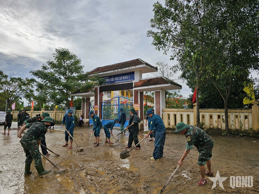 Tinh thần mỗi người làm việc bằng hai được quán triệt đến từng cán bộ, chiến sĩ. Đến 16 giờ cùng ngày, toàn bộ bùn đất đã được giải phóng, tuyến đường chạy ngang trước cổng trường cũng thông suốt; phòng học, sân trường sạch sẽ, khang trang. Dụng cụ giảng dạy, học tập, cấp dưỡng, đồ chơi cho các em nhỏ cũng được các chú bộ đội vệ sinh sạch sẽ, cẩn thận sắp đặt đúng vị trí ban đầu… “Đúng là ở đâu khó có bộ đội!”, cô giáo Nguyễn Thị Kim Tứ cùng các giáo viên nhà trường đồng thanh.