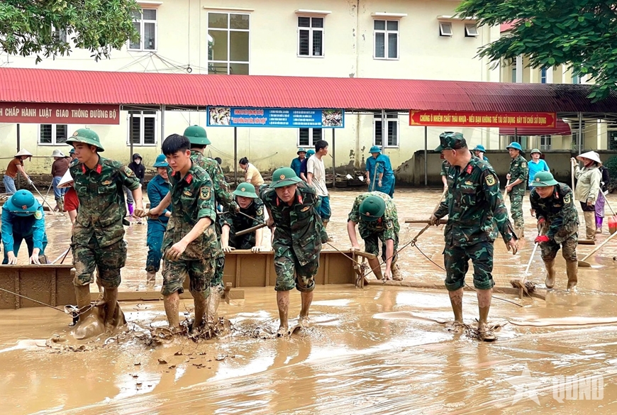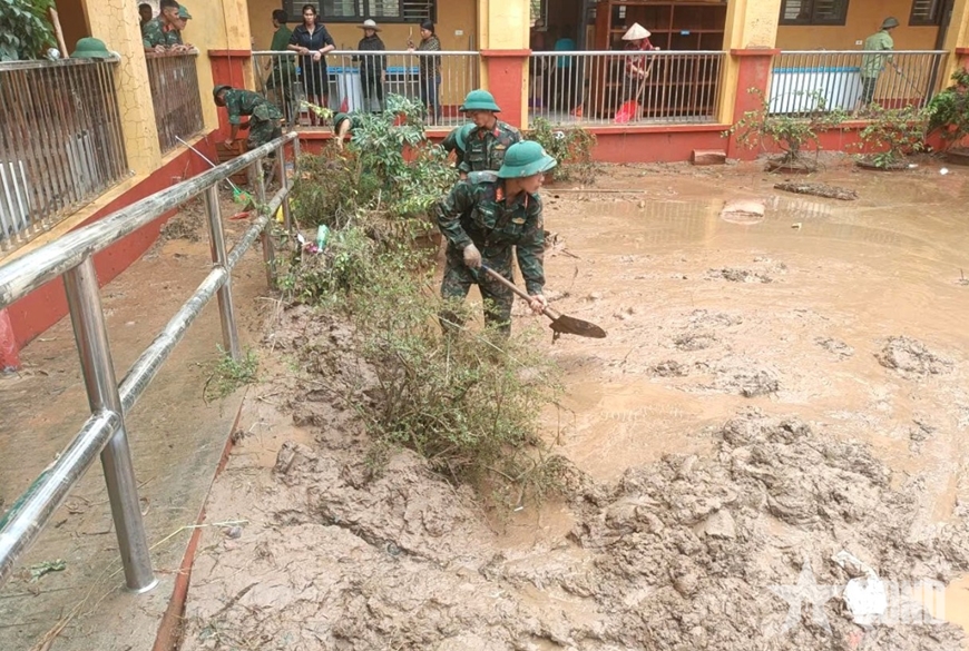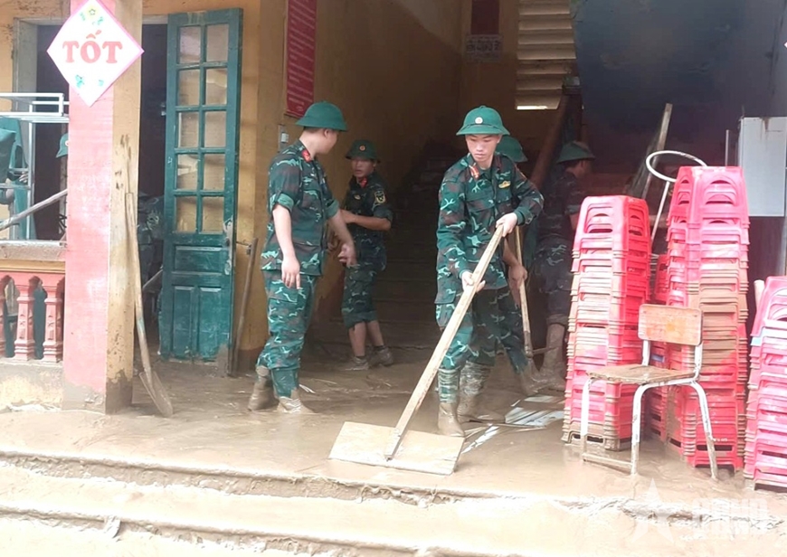 Trung tá Đỗ Tiến Thành chia sẻ: "Chúng tôi xác định nhiệm vụ trước mắt là giúp nhà trường khắc phục những thiệt hại của hoàn lưu cơn bão; học sinh bán trú ổn định nơi ăn, ở và học sinh nhà trường sớm trở lại học tập. Tiếp đó, đơn vị phối hợp hỗ trợ địa phương khắc phục những vị trí sạt lở; giải tỏa giao thông thông thoáng; tổng dọn vệ sinh môi trường, giúp bà con địa phương sớm ổn định cuộc sống".