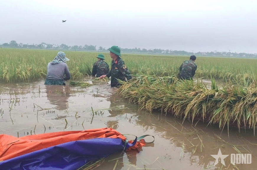 Những ngày này, trên khắp cánh đồng ở các địa phương trên địa bàn Quân khu 2, cán bộ, chiến sĩ các đơn vị vẫn đang hối hả chạy đua với thời gian, giúp bà con nhân dân khẩn trương thu hoạch lúa và hoa màu trước nguy cơ mất trắng.