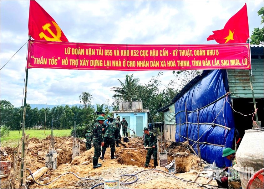 Trước thiệt hại lớn hơn dự kiến, theo đề xuất của cấp ủy, chính quyền địa phương, các đơn vị tiếp tục bổ sung lực lượng, phương tiện, tập trung xây dựng nhà cho nhân dân tại các tỉnh Gia Lai, Đắk Lắk, Khánh Hòa. Tính đến đầu tháng 1-2026, Quân khu 5 đã huy động hơn 191.000 lượt người, hơn 3.700 lượt phương tiện giúp địa phương khắc phục hậu quả thiên tai, xây dựng và sửa chữa nhà ở cho dân. Thiếu tướng Trần Thanh Hải, Phó tư lệnh Quân khu 5 cho biết, các đơn vị đã phối hợp chặt chẽ với cấp ủy, chính quyền địa phương, nắm chắc tình hình từng hộ dân, kịp thời tháo gỡ khó khăn, bảo đảm triển khai thần tốc, quyết liệt, hiệu quả, giữ nghiêm kỷ luật và an toàn tuyệt đối.