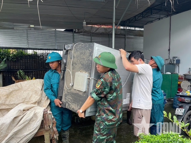 Bộ đội và dân quân giúp di dời tài sản của bà con xã Krông Bông.