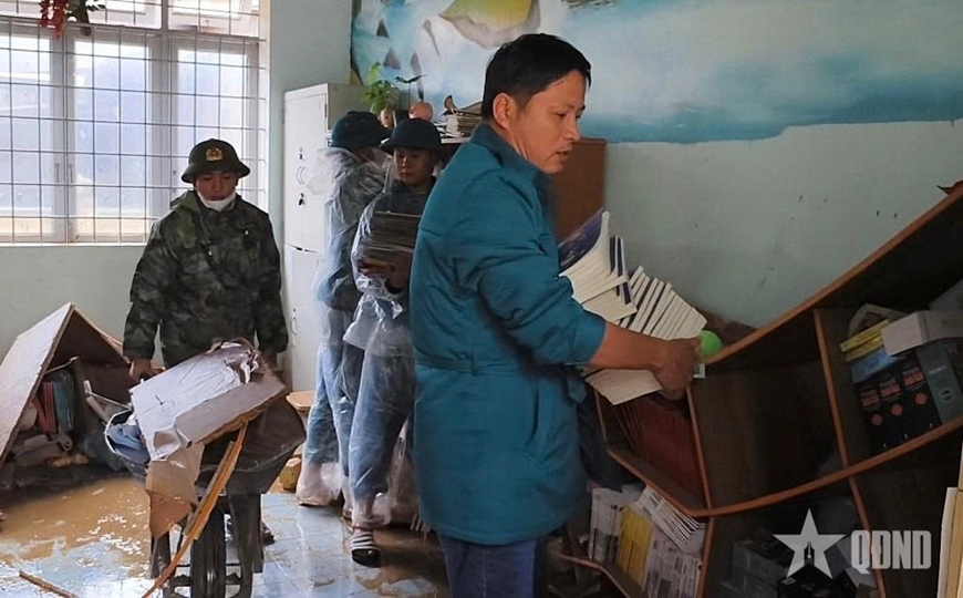 Khi nước lũ bắt đầu rút, bộ đội địa phương lập tức hỗ trợ dọn dẹp trường học để sớm khôi phục việc dạy và học. Tại các điểm trường bị ngập bùn đất, bộ đội và dân quân khơi thông cống rãnh, rửa sân trường, di chuyển và sắp xếp bàn ghế, thiết bị học tập. Nhiều trường học chỉ sau một ngày đã trở lại sạch sẽ, sẵn sàng đón học sinh trở lại.
