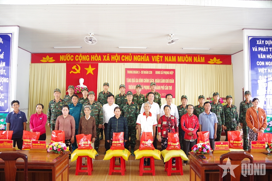 Bên cạnh bỏ ngày công góp sức xây dựng nhà, sửa chữa đường, Trung đoàn 3 còn phối hợp với cấp ủy, chính quyền địa phương tổ chức thăm hỏi, tặng 20 phần quà, tổng trị giá hơn 20 triệu đồng, cho các gia đình chính sách và hộ nghèo, thể hiện rõ tinh thần tri ân và trách nhiệm của người lính đối với nhân dân.