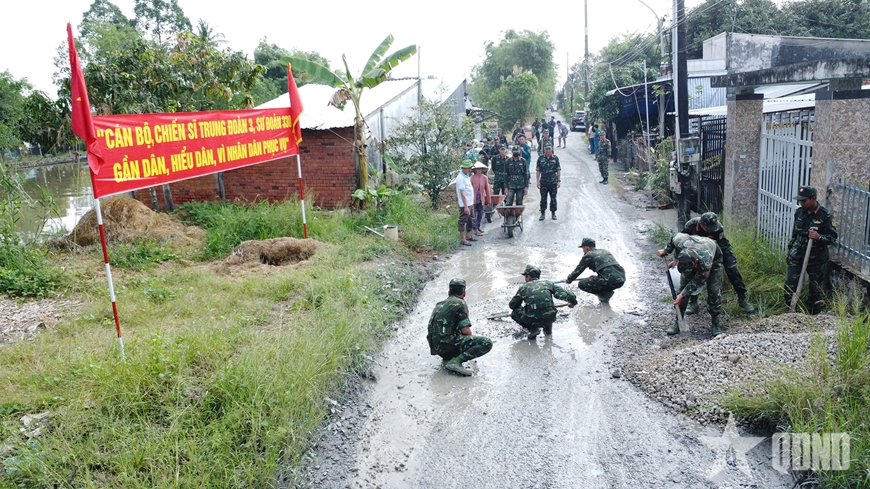 Không chỉ giúp xây nhà, trong khuôn khổ các hoạt động này, lực lượng của đơn vị đã trực tiếp nâng cấp, dặm vá 10km đường giao thông nông thôn, giúp cải thiện điều kiện đi lại cho người dân, nhất là trong mùa mưa, đồng thời tạo thuận lợi cho phát triển kinh tế-xã hội địa phương.