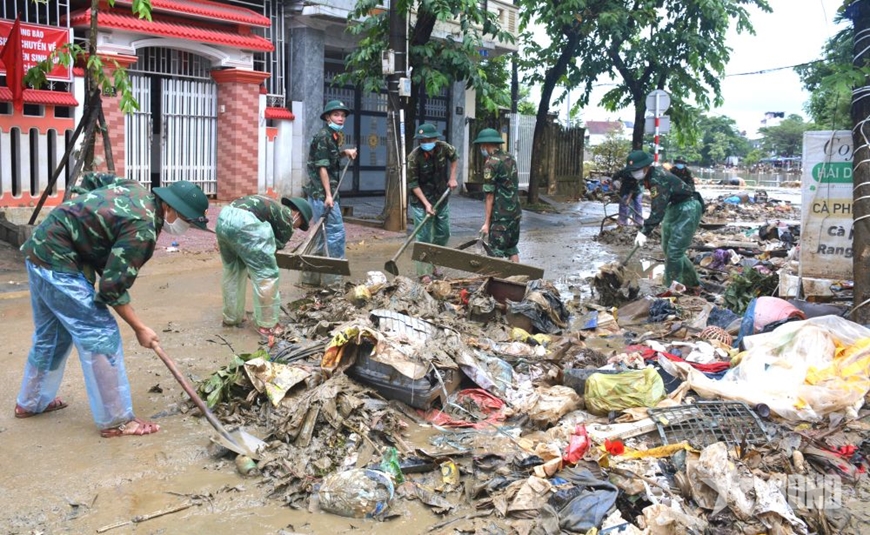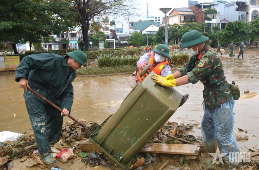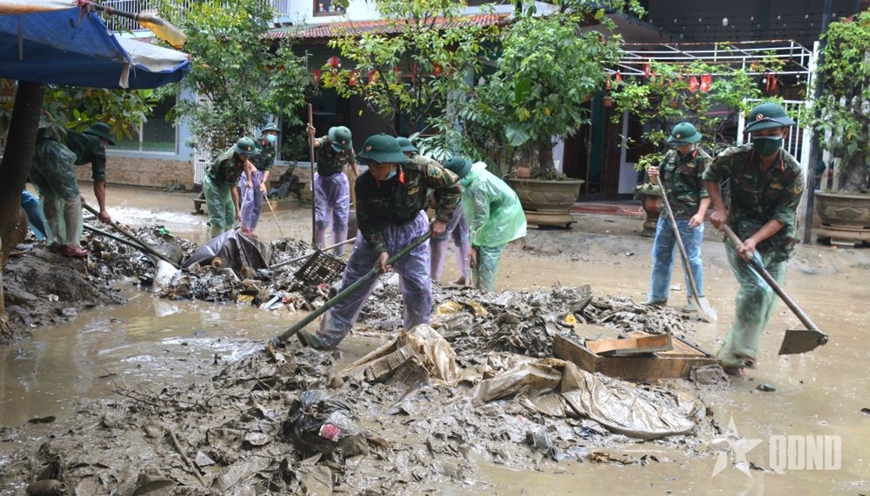 Bà Nguyễn Thị Tùng, sống tại đường Nguyễn Phong Sắc (phường Vỹ Dạ), xúc động nói khi thấy bộ đội dọn dẹp trước nhà: “Khu vực này thấp nên cả ba trận lũ liên tiếp đều ngập sâu. Lũ mang theo nhiều bùn đất, cộng thêm rác thải người dân dọn từ nhà ra đường nên ô nhiễm nặng nề. Nhờ các chú bộ đội đến giúp, bà con mới có chỗ đi lại sạch sẽ. Ơn này dân chúng tôi không quên!”.