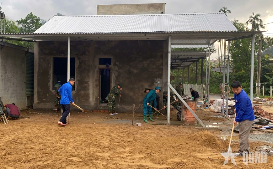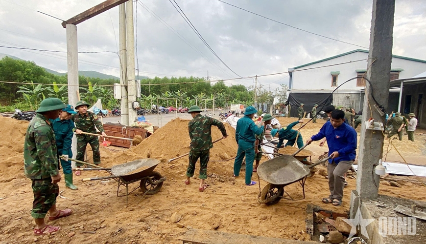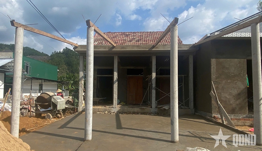 Sau hơn 1 tháng thi công, ngoài việc hoàn thành sửa chữa 40 ngôi nhà và bàn giao 2 ngôi nhà tại xã Lộc An, đến nay 3 ngôi nhà xây mới của các hộ gia đình tại xã Khe Tre cũng đã bước vào giai đoạn hoàn thiện. Khối lượng công việc khá nhiều, tuy nhiên cán bộ, chiến sĩ cùng lực lượng dân quân vẫn nỗ lực, quyết tâm từng ngày, từng giờ, chạy đua với thời gian để hoàn thành các công trình.