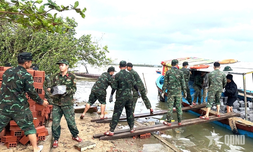 Còn tại thôn Tà Giang 2, xã Tây Khánh Sơn (tỉnh Khánh Hòa), trước nguy cơ bị chậm tiến độ do nguồn cung vật liệu xây dựng khan hiếm, nhiều khu vực vẫn bị ngập sâu, tổ công tác của Lữ đoàn 101 (Vùng 4 Hải quân) đã có sáng kiến sử dụng đá cuội và cát pha có sẵn dọc các lòng sông, lòng suối để gia cố nền móng và xây tường bao chống sạt lở đất. Cách làm này không chỉ bảo đảm độ bền chắc, chống xói mòn mà còn tiết kiệm hàng chục triệu đồng chi phí vận chuyển trong điều kiện giao thông bị chia cắt hoàn toàn.