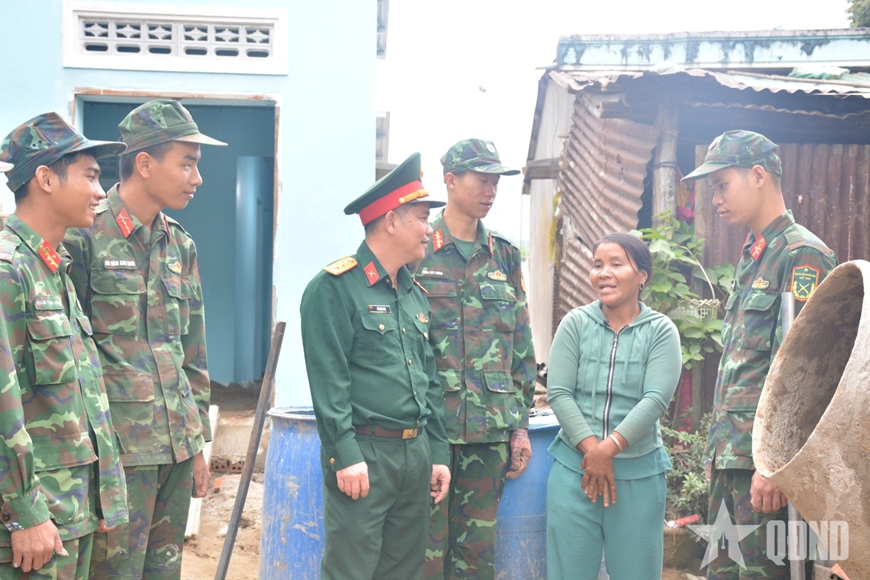 Sáng 30-12, Thiếu tướng Lương Đình Chung, Chính ủy Quân khu 5 đến thăm, kiểm tra và động viên lực lượng bộ đội đang làm nhiệm vụ xây dựng nhà cho nhân dân tại xã Đại Lãnh và xã Suối Hiệp, tỉnh Khánh Hòa.