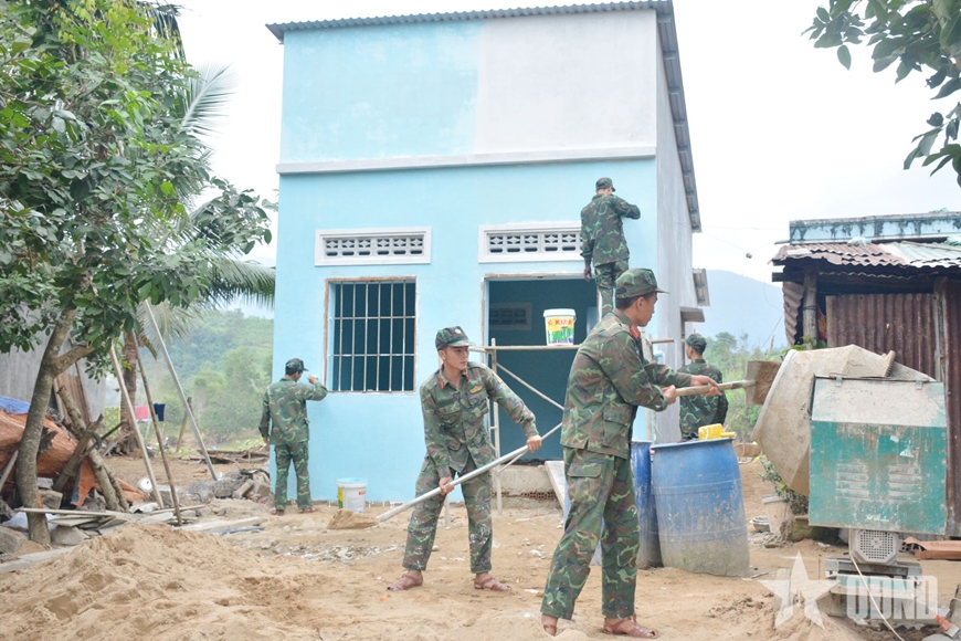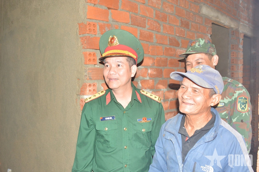 | Thượng sĩ Trần Huy Hùng, Tiểu đoàn 460, Trung đoàn 974, hoàn thiện nhà bà Cao Thị Huê. |