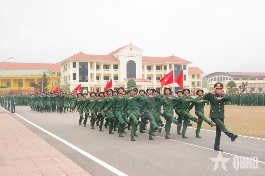 | Chiến sĩ Trung đoàn 165 duyệt đội ngũ trong Lễ tiễn quân nhân hoàn thành nghĩa vụ quân sự tại ngũ năm 2026. Ảnh: PHẠM THỨC |