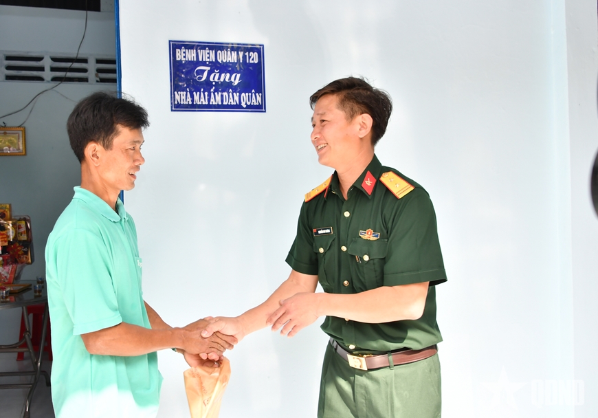 Đại diện Bệnh viện Quân y 120, Cục Hậu cần-Kỹ thuật Quân khu 9 trao "Nhà mái ấm dân quân” tặng gia đình anh Võ Văn Tốt.
