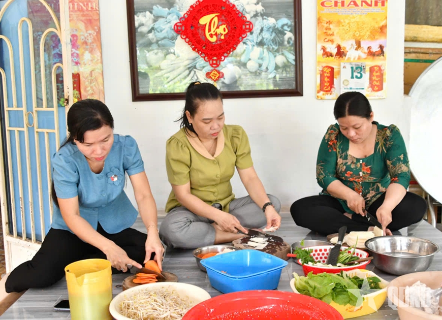 Hội viên Hội Phụ nữ xã An Bình cùng nhau làm bánh dịp "Tết quân dân".
