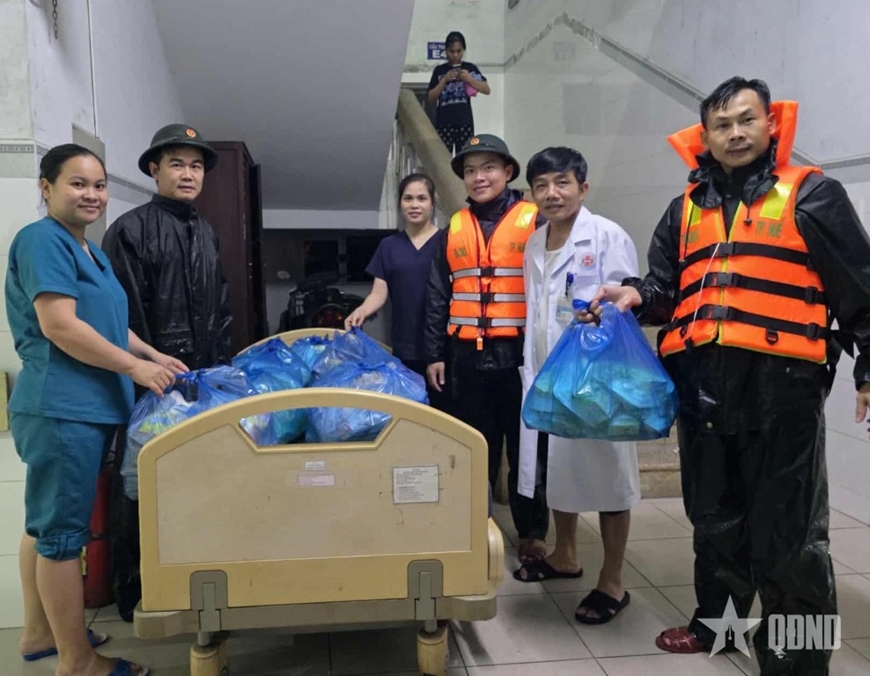 Nhận được tin báo, đơn vị đã tổ chức một bộ phận tiếp tế do Thiếu tá Nguyễn Thọ, Phó chính ủy đơn vị trực tiếp chỉ huy ngay lập tức đã cơ động hơn 10 km băng qua giữa dòng nước lũ chảy xiết, bất chấp mọi hiểm nguy, ngay trong đêm có mặt tại Bệnh viện cùng hơn 150 suất quà bao gồm cơm, bánh ngọt, nước suối và các nhu yếu phẩm cần thiết cho người bệnh kịp thời để hỗ trợ bà con.