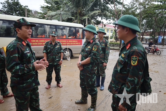 Đại tá Lê Văn Hùng cũng cho biết, theo sự chỉ đạo của các cấp và công điện của Bộ Quốc phòng, các đơn vị phải quyết liệt giúp dân để công tác khắc phục sau lũ được xong trước ngày 30-11 và mọi hoạt động của địa phương được vận hành thông suốt.