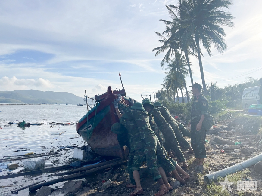Ngay sau khi bão tan, Bộ CHQS tỉnh đã điều động hàng trăm cán bộ, chiến sĩ cùng lực lượng dân quân tự vệ, hơn 50 phương tiện cơ giới, xuồng, ca nô và hàng chục bộ thiết bị thông tin cơ động đến các khu vực bị thiệt hại nặng để giúp dân khắc phục hậu quả.
