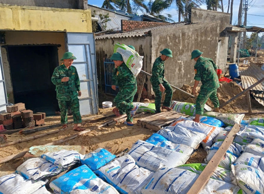 Với phương châm “không để ai bị bỏ lại phía sau, không để nhân dân phải sống cảnh màn trời chiếu đất, không để ai bị khát nước, đói cơm”, tại Sông Cầu, Tuy An Bắc (Đắk Lắk); Đức Phổ, Sa Huỳnh, Bình Sơn, Bình Chương (Quảng Ngãi); Trà Leng, Trà Đốc, Trà Tân, Khâm Đức (Đà Nẵng)... bộ đội, dân quân đã vượt dốc, băng rừng, cõng được hàng chục tấn lương thực, thực phẩm tiếp tế cho các hộ dân bị cô lập, chia cắt bởi mưa lũ, sạt lở đất. Những gia đình có nhà bị đổ sập, cuốn trôi đều được bộ đội chung tay, góp sức giúp dựng nhà tranh, nhà tạm hoặc đón về ở tạm trong cơ quan, doanh trại.