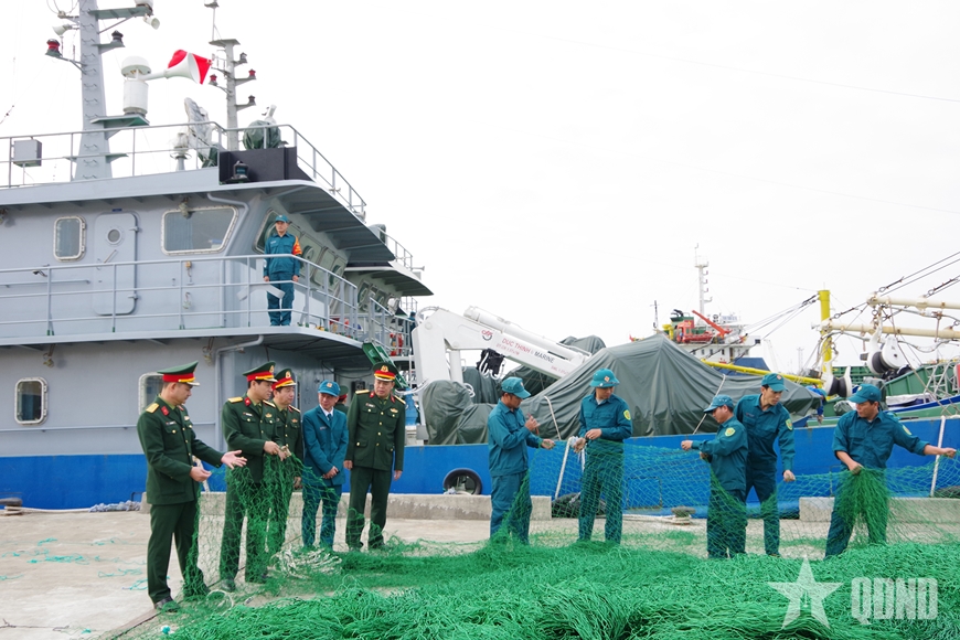 Hải đội Dân quân thường trực tỉnh Quảng Trị chuẩn bị ngư cụ trước khi lên đường làm nhiệm vụ trực sẵn sàng chiến đấu.