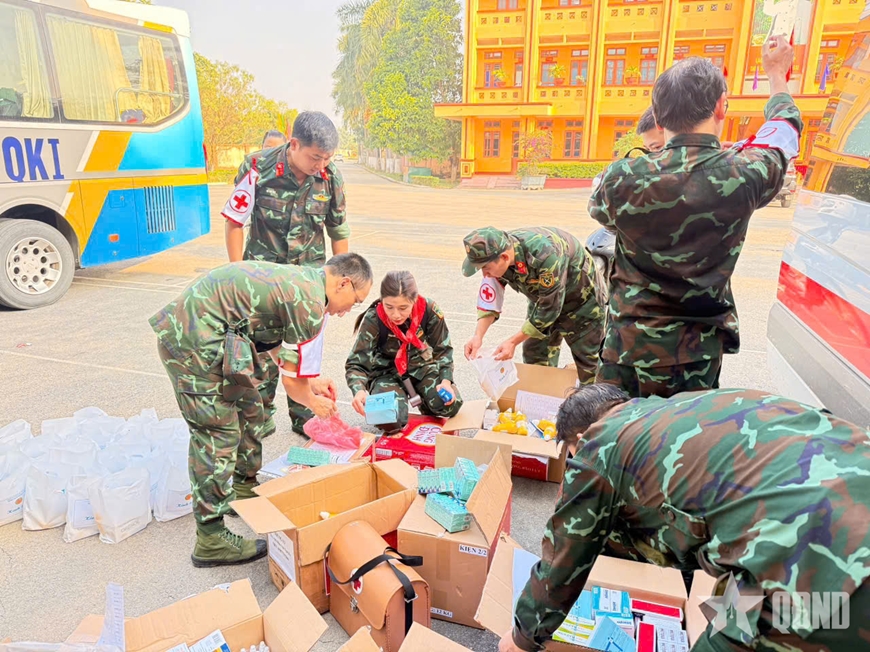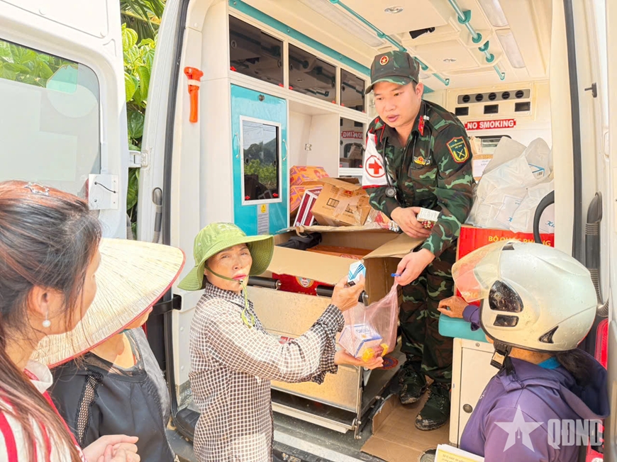 Ngay khi đến nơi, lực lượng quân y của Bệnh viện đã có mặt tại phường Linh Sơn, TP Thái Nguyên, tổ chức khám bệnh, cấp phát một số loại thuốc thiết yếu phòng, chống bệnh về mắt, tiêu hóa cho nhân dân. Ngoài cấp phát thuốc, lực lượng quân y của Bệnh viện còn tham gia phun khử khuẩn, phát tờ rơi, hỗ trợ một số nhu yếu phẩm như sữa, thức ăn, rau xanh giúp người dân, tổng vệ sinh dọn dẹp môi trường sau lũ...