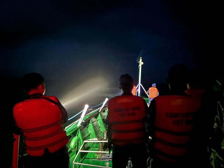 Nhận lệnh từ Sở chỉ huy, tàu CSB 3008 thuộc Hải đội 422, Bộ tư lệnh Vùng CSB 4 lập tức lên đường thực hiện nhiệm vụ cứu nạn tàu cá. Gần 2 giờ hành trình, con tàu liên tục phải vượt qua sóng cấp 5-6 trong điều kiện đêm tối và mưa dông. 19 giờ 30 phút, bằng ra-đa và quan sát trực tiếp giữa màn mưa dày đặc, tàu CSB 3008 tiếp cận được nơi tàu cá gặp nạn. Lúc này, tàu cá đã chìm, 4 ngư dân đang trôi dạt trên biển. Lập tức, tàu CSB 3008 triển khai xuồng cứu sinh.