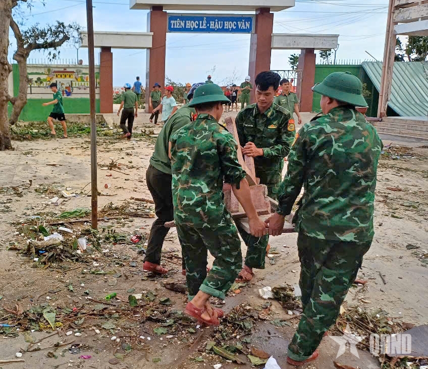 Trước những thiệt hại to lớn về hạ tầng, tài sản do cơn bão số 13 gây ra, Sư đoàn 2 (Quân khu 5) đã điều động hơn 350 cán bộ, chiến sĩ đến các vùng bị thiệt hại nặng để giúp dân khắc phục hậu quả.