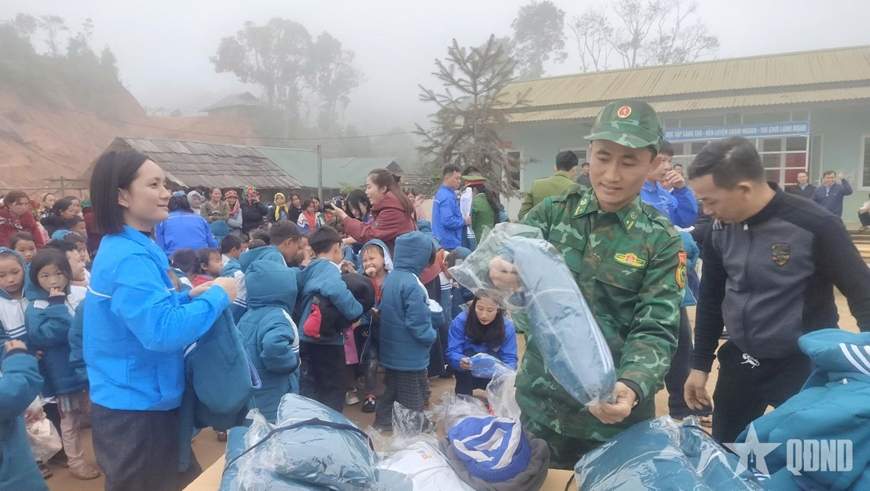 | Tặng áo ấm cho các em học sinh ở những bản làng biên giới xa xôi. |