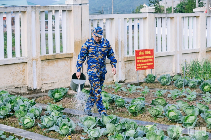 | Cán bộ, chiến sĩ tăng gia trên đảo Trà Bản. |