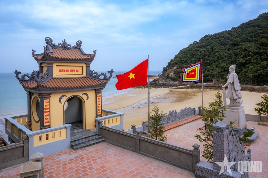 | Đoàn công tác đến thăm Trấn Hải Linh Đài trên đảo Trần. |