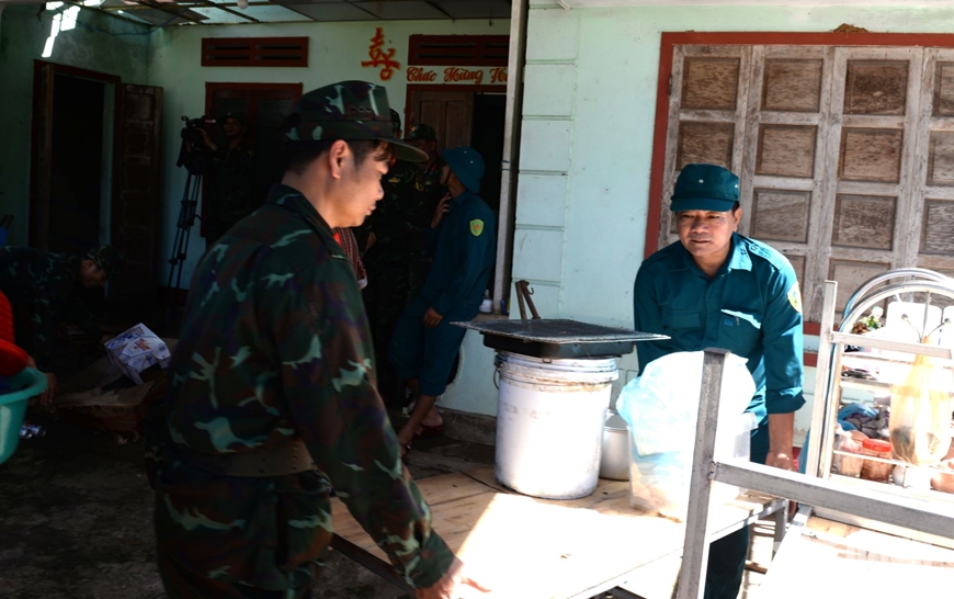 Trong số cán bộ, chiến sĩ tham gia giúp nhân dân khắc phục hậu quả sau bão, nhiều đồng chí cũng có nhà cửa của gia đình bị hư hỏng, thiệt hại, nhưng các anh vẫn gác lại tình riêng để đi giúp dân.
