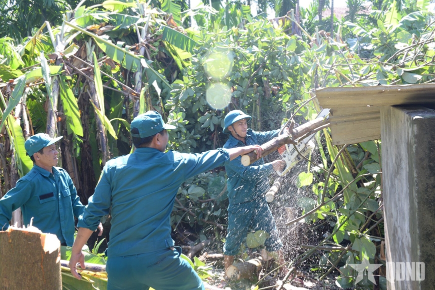 Trao đổi với chúng tôi, Thượng tá Trần Thế Phan, Chỉ huy trưởng Bộ CHQS tỉnh Quảng Ngãi cho biết: Để khẩn trương khắc phục hậu quả sau bão, Bộ CHQS tỉnh Quảng Ngãi đã điều động 2.193 cán bộ, chiến sĩ bộ đội thường trực, dân quân phối hợp với các lực lượng giúp các địa phương, nhân dân lợp lại mái nhà, thu dọn cây cối ngã đổ, vệ sinh đường giao thông, trường học, trạm y tế.