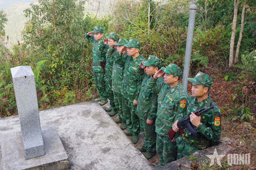 | Đồn Biên phòng Mường Ải (Bộ đội Biên phòng Nghệ An) tuần tra bảo vệ đường biên, cột mốc trên địa bàn dịp Tết Nguyên đán Ất Tỵ. Hơn 20 năm làm nhiệm vụ của người lính Biên phòng, năm nay Đại úy Hồ Ngọc Đàm (thứ hai từ trái sang) xung phong ở lại trực Tết và cùng các đồng đội tham gia tuần tra bảo vệ đường biên, cột mốc. |