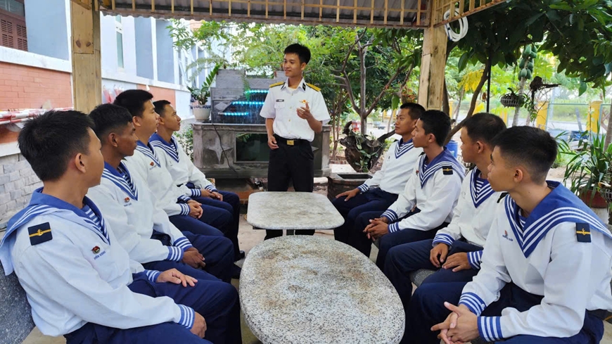 Thiếu tá Hồ Đình Dũng, Đại đội trưởng Đại đội 2, Chỉ huy khung công tác tại đảo Nam Yết cho rằng, trong điều kiện xa đơn vị, vai trò của cán bộ càng trở nên quan trọng. Hành động của cán bộ chính là mệnh lệnh không lời. Nếu cán bộ gương mẫu, gần gũi, chia sẻ với bộ đội thì tư tưởng sẽ ổn định, tập thể sẽ đoàn kết. Thực hiện phương châm “cùng ăn, cùng ở, cùng làm”, cán bộ khung trực tiếp tham gia lao động, sinh hoạt với bộ đội; duy trì nghiêm các buổi sinh hoạt tư tưởng; tổ chức hoạt động văn hóa, văn nghệ, thể thao phù hợp điều kiện trên đảo. Đơn vị còn duy trì mô hình tổ tư vấn tâm lý, tổ gắn kết đồng đội; chủ động phối hợp với gia đình quân nhân để nắm bắt tình hình từ xa, kịp thời giải quyết những vấn đề phát sinh.