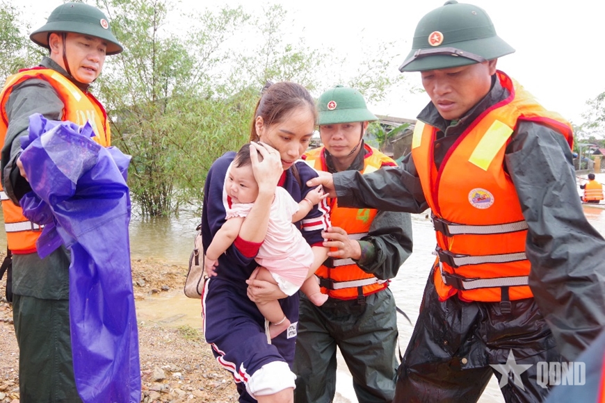 Tại các khu vực nói trên, mưa lớn khiến nước lũ ngập từ 1m đến 1,5m, nhiều tuyến đường bị chia cắt, gây nguy hiểm đến tính mạng và tài sản của nhân dân. Lực lượng quân sự đã sử dụng ca-nô, bè mảng và phương tiện cơ động đưa người già, trẻ nhỏ và tài sản thiết yếu đến nơi an toàn; đồng thời tổ chức chốt chặn, hướng dẫn người dân không đi vào vùng nước sâu, dòng chảy xiết.