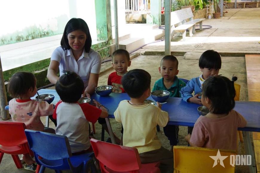 | Chị Lê Thị Thắm, Chủ tịch Hội Phụ nữ cơ sở chăm sóc các cháu tại Trường Mầm non của đơn vị. |