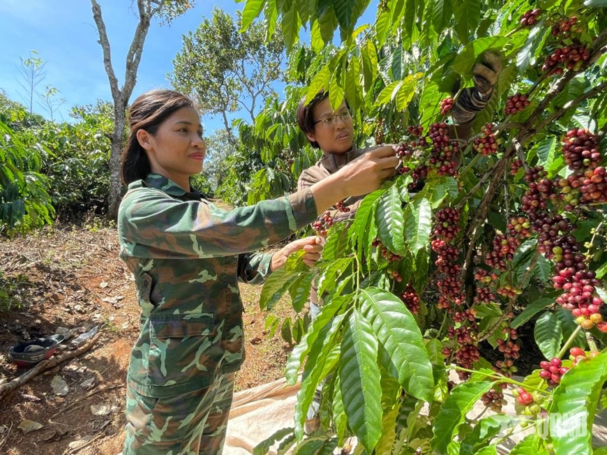 Trong lao động sản xuất, phụ nữ luôn tiên phong nhận khoán cà phê, cao su, kết hợp trồng xen điều, bơ, hồ tiêu, sầu riêng, thả cá, nuôi bò, heo… Nhiều mô hình “Phụ nữ sản xuất giỏi”, “Vườn cây kiểu mẫu”, “Phụ nữ sáng tạo trong tăng gia” được nhân rộng; không ít hội viên trở thành “chủ vườn giỏi”, góp phần vào phong trào “Lao động giỏi, lao động sáng tạo” của Binh đoàn.
