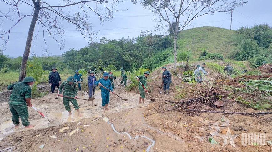 Ngày 4-11, sau khi lũ rút, Bộ CHQS TP Huế điều động tối đa lực lượng, phương tiện hỗ trợ các đơn vị, địa phương khắc phục hậu quả.