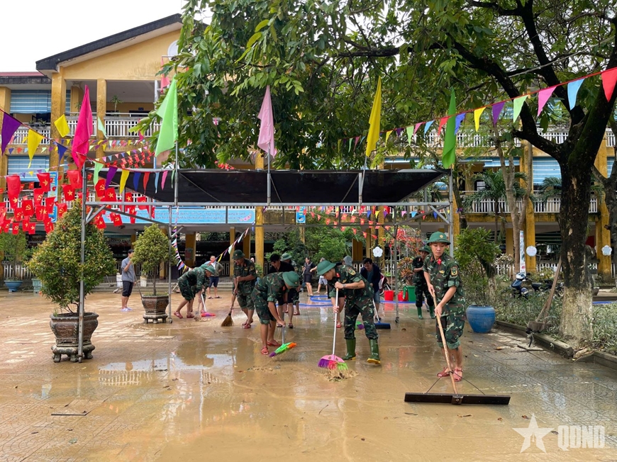 Thực hiện chỉ đạo của Bộ CHQS TP Huế, các cơ quan, đơn vị điều động hơn 3.000 cán bộ, chiến sĩ phối hợp cùng lực lượng dân quân khẩn trương khắc phục hậu quả tại các trường học bị ngập lụt.