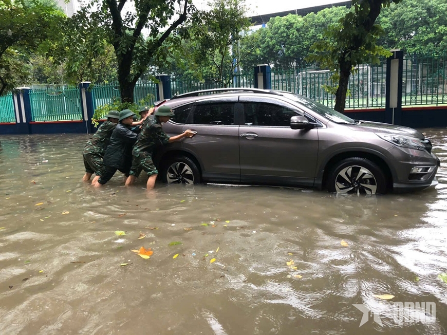 Do ảnh hưởng của hoàn lưu bão số 11, mưa lớn khiến nhiều khu vực của TP Hà Nội bị ngập sâu, sinh hoạt của nhân dân gặp nhiều khó khăn.