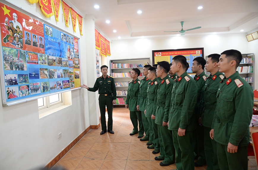 | Cán bộ Tiểu đoàn Công binh 544 giới thiệu lịch sử của Quân đội, đơn vị tới các chiến sĩ. |