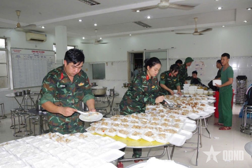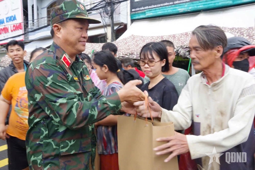| Bộ CHQS tỉnh Khánh hòa tổ chức nấu hàng trăm suất cơm, trao cho các hộ dân bị thiệt hại. |