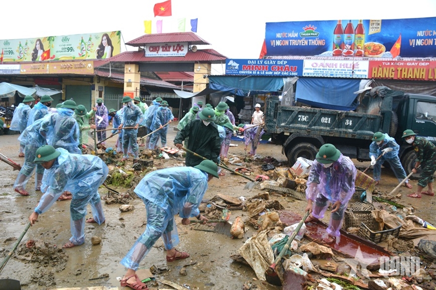 Ngày 4-11, sau khi lũ rút, Bộ CHQS TP Huế điều động tối đa lực lượng, phương tiện hỗ trợ các đơn vị, địa phương khắc phục hậu quả.