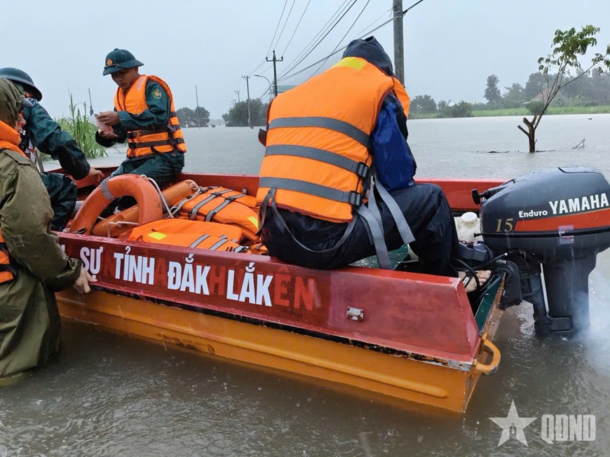 Trước diễn biến phức tạp của mưa lũ và dự báo vượt mức lũ lịch sử, LLVT tỉnh Đắk Lắk đã nhanh chóng vào cuộc với tinh thần trách nhiệm bảo đảm an toàn tính mạng và tài sản của nhân dân; kịp thời tiếp cận, lội giữa dòng lũ, vượt ngập nặng, làm việc xuyên đêm để cứu dân, hỗ trợ những gia đình bị cô lập, người dân cần giúp đỡ, vận động các hộ sống tại khu vực có nguy cơ sạt lở chủ động di chuyển đến nơi an toàn; vận chuyển và cung cấp lương thực, nước sạch cho bà con vùng bị ngập lụt, đồng thời bố trí lực lượng thường trực để sẵn sàng ứng cứu khi có tình huống xảy ra.